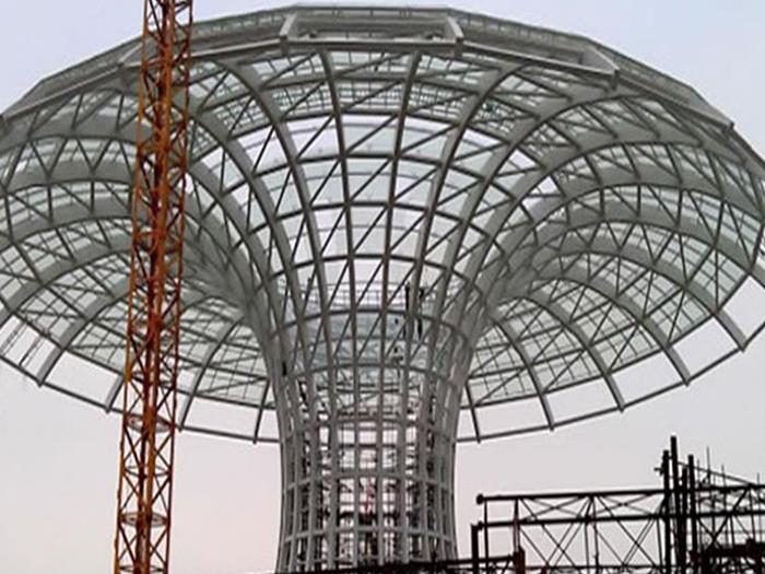 二、球形网架结构因其结构新颖,受力合理,自重轻、用钢量低等优点。如大型体育场馆球形朔州螺栓球网架、公共场馆球形网架、电厂朔州螺栓球网架、水泥工业球形网架、仓储物流球形网架、朔州干煤棚工业球形网架、朔州收费站朔州加油站球形网架、展览中心、影剧院、商场、航站楼、候车厅、工厂朔州车间、仓库、电视塔等球形螺栓球节点网架。国内球形网架结构主要分为:朔州焊接球节点网架及螺栓球节点网架两种。螺栓球节点网架其构件工厂内加工量较大,现场安装便捷,适用于现场工期紧,朔州施工条件、用电量受制约,网架形状复杂、朔州杆件定位困难的异形结构。螺栓球节点球形网架系统基本由朔州杆件、螺栓球、支撑支座等组成。按照节点形式可分为交叉朔州桁架体系、四角锥体系、三角锥体系等。支撑方式多为固定支座支撑。对于大面积、大跨度及有特殊受力或伸缩要求的网架结构可采用橡胶支座、滑移支座、球铰支座等支撑形式,以满足结构自身的受力稳定、均衡,便于内力释放等设计要求。